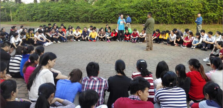 接下來的比賽項目是報數(shù),看似很簡單的事情,但過程總是因為某個人開小差、不用心等導致團隊失敗,失敗團隊的隊長承擔100%責任,俯臥撐從5個到10個到20個到40個再到80個,每一輪比賽輸?shù)膱F隊隊長承擔的俯臥撐是上一輪的雙倍。比賽氛圍開始還很比較輕松,兩輪后大家開始緊張了,到第五輪時,受罰的隊長苦苦支撐著、一次又一次爬起、趴下、再爬起時,全體員工沉默了。隨后一名又一名員工趴下與隊長一起受罰,一起承擔,最后其它團隊的所有成員自愿自發(fā)全部圍繞在受罰隊長身邊一起受罰、承擔,給受罰隊長支持、加油!