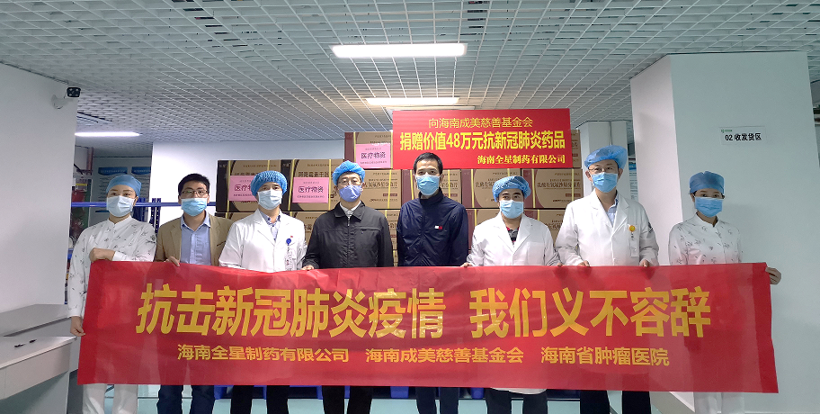 在全省上下疫情防控關(guān)鍵時期,海南全星制藥有限公司始終不忘履行社會責(zé)任,繼2月5日向??谑屑t十字會捐贈107萬元的抗疫藥品后,全星再行動,2月7日,向海南成美慈善基金會捐贈價值48萬元的抗疫藥品,用于支持海南省腫瘤專科醫(yī)療聯(lián)合體下轄110多家醫(yī)療機(jī)構(gòu)開展一線疫情防控工作,助力我省早日打贏疫情防控攻堅戰(zhàn)。